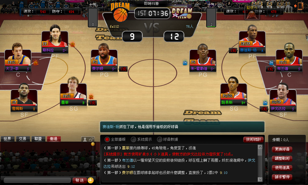 戰鬥調整:球隊戰術是球隊能否獲得比賽勝利的另一關鍵,玩家可以隨時調整戰術,保證將每位球員的戰鬥力發揮到極致,同時克制對手,獲取比賽勝利。
