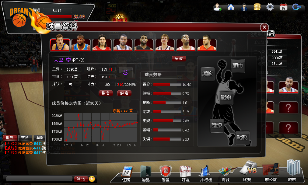 每天下午四點,系統會根據當天球員的表現,對現役球員進行排名。表現優異的球員,身價會大漲。