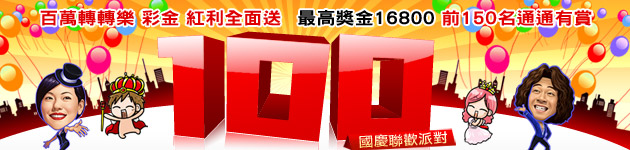 「光輝100,國慶聯歡派對」,百萬轉轉樂、彩金、紅利全面放送