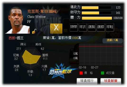 自3月21日20:00開始至3月22日 09:59為止,各位經理人只要轉入球隊1,000飯卡以上,就可獲得顛峰克里斯-韋伯!儲值越多送越多,最高還能獲得上週西區最佳球員底薪「蒙塔-艾利斯」、「底薪巨星卡」、「 X球星續約卡」與「VIP鑰匙