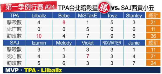 上週進入第19到24場例行賽,連續奪下2連勝的「台北暗殺星