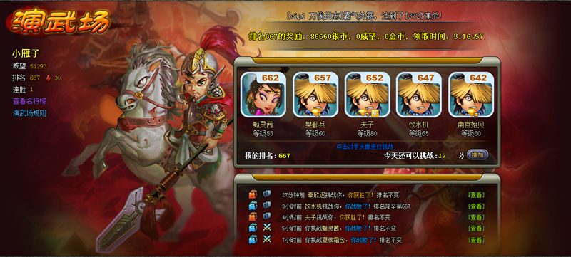 競技場是英雄的戰場,霸主的天下!如何讓自己成為榜上名將?當玩家的官府等級到達31級,將會開啟「演武場