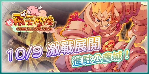 《新飛天歷險》在10月9日再次為大家帶來全新改版,從上方已可見這次的主要內容是『公會戰』囉!而除此之外,大家同樣關心的『煉化師轉職』和高級練功地圖『浮屠山』亦會同步開放,遊戲中即將會湧起新的浪潮!