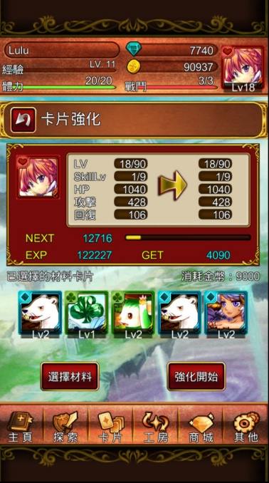 如果想要在強化時節省金錢的話,可以先選定幾張低星數、低等級卡片來養,等到這些卡片等級夠高後再當作主力卡強化的素材,如此一來就可以避免浪費太多金錢在強化上面了。