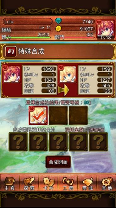 圖10主卡練到90級滿等並湊齊素材卡、金錢後就可以開始特殊合成