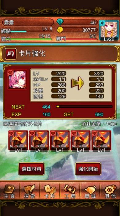 圖6強化在遊戲中是提升卡牌戰力的唯一途徑,越後期會發現等級差決定一切