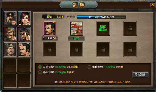 【image2】武將等級無法高於君主等級,否則將無法進行訓練