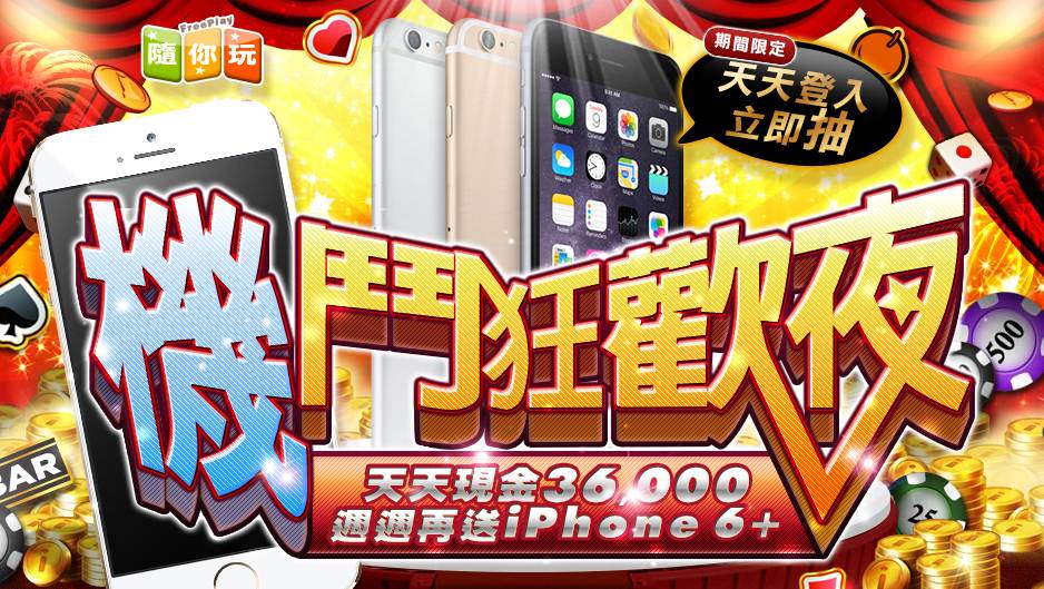 舉凡愛玩「大老二」、「13支」、「接龍」這三款的玩家,週年慶期間,天天開戰週週送,競賽以日為單位,累積最高的四日積分,還可競逐週獎金爭奪戰,每週送出現金15000和一支iPhone 6!真的是一舉兩得,有打順便拿!玩遊戲送iPhone 6,還有60萬現金獎、六千萬i幣獎勵送乎你!