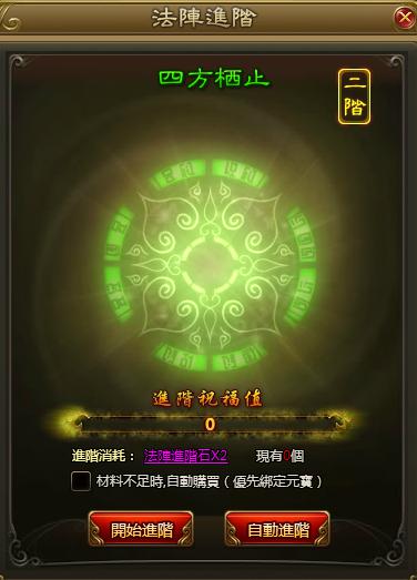 玩家可透過消耗「法陣進階石」對法陣進行升階