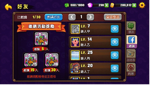 遊戲初期也推薦邀請朋友一同進行遊戲,可以獲得大量稀有道具--大天狗傳奇魂石,讓你的隊伍在初期就能有強大的傳奇。
