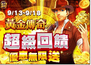 角子共玩這次為了要歡慶「黃金傳奇」上線,9/13~9/17特地開放全等級玩家遊玩這款作品,讓大家有機會一起參與贏分比賽,人人都有機會可以贏分拿大獎!