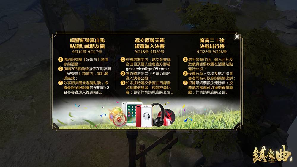 【2017.09.14 mirror訊】 由網易互動娛樂有限公司研發的東方幻想手機MMO《鎮魔曲》今(14)日正式推出三闖關PVP玩法「桃源劫」,真人PK,奪取敵人手中鑰匙,開啟下層戰鬥!此外,朋友圈即日開放「好聲音」頻道,官方歌唱比賽火熱召開!