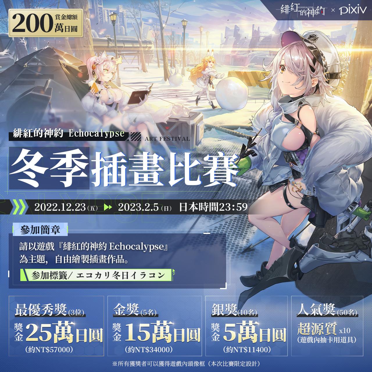 【2022.12.23 mirror 訊】 由游遊網路所代理的獸娘 x 終末世界風格 RPG 卡牌策略類手機遊戲《緋紅的神約 Echocalypse》,今(23)日釋出遊戲世界觀,預告近期將展開台港澳事前預約,同時宣布全球同人插畫活動正式開跑,官方提供總價值超過 250 萬日圓的獎金,單人獎金最高可獲得25萬日圓,為近期遊戲同人插畫賽事中最高額的單項獎金,還有機會成為官方御用繪師。