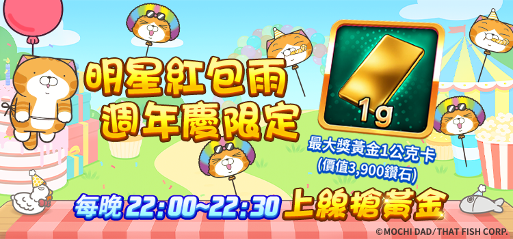 白爛貓集字換黃金:限時開放白爛貓集字活動,只要收集到指定字樣,就有機會兌換好禮——黃金1g卡!