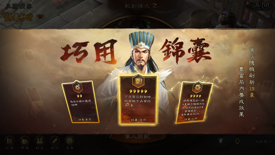 全新登場的「錦囊妙計」系統將自 3 級商店起隨機刷新錦囊妙計卡,為棋局帶來更多戰術變化。主公可靈活運用包含「絕道」、「選將」、「立將」和「伏兵」等在內的多種錦囊卡,根據戰況與陣容組成選擇最契合的策略方案。隨著商店等級提升,出現高星級錦囊妙計卡的機率亦同步提高,使整體對弈節奏更具變數與深度,讓每一次出手都充滿未知與驚喜。