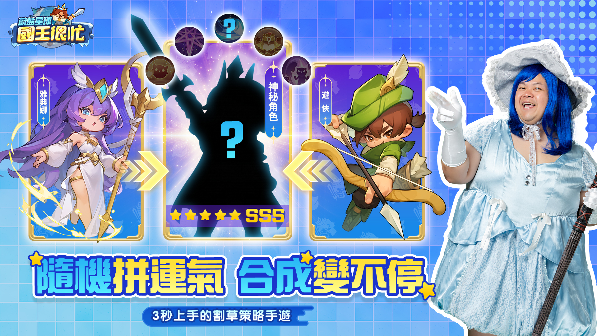 【2025.10.23 mirror 訊】 英雄隨機合成、3秒輕鬆上手的割草策略手遊《蔚藍星球:國王很忙》,於今日(10月23日)宣布邀請台灣知名創作者「大蛇丸」擔任遊戲代言人,並同步釋出精彩有趣的代言人宣傳花絮影片。