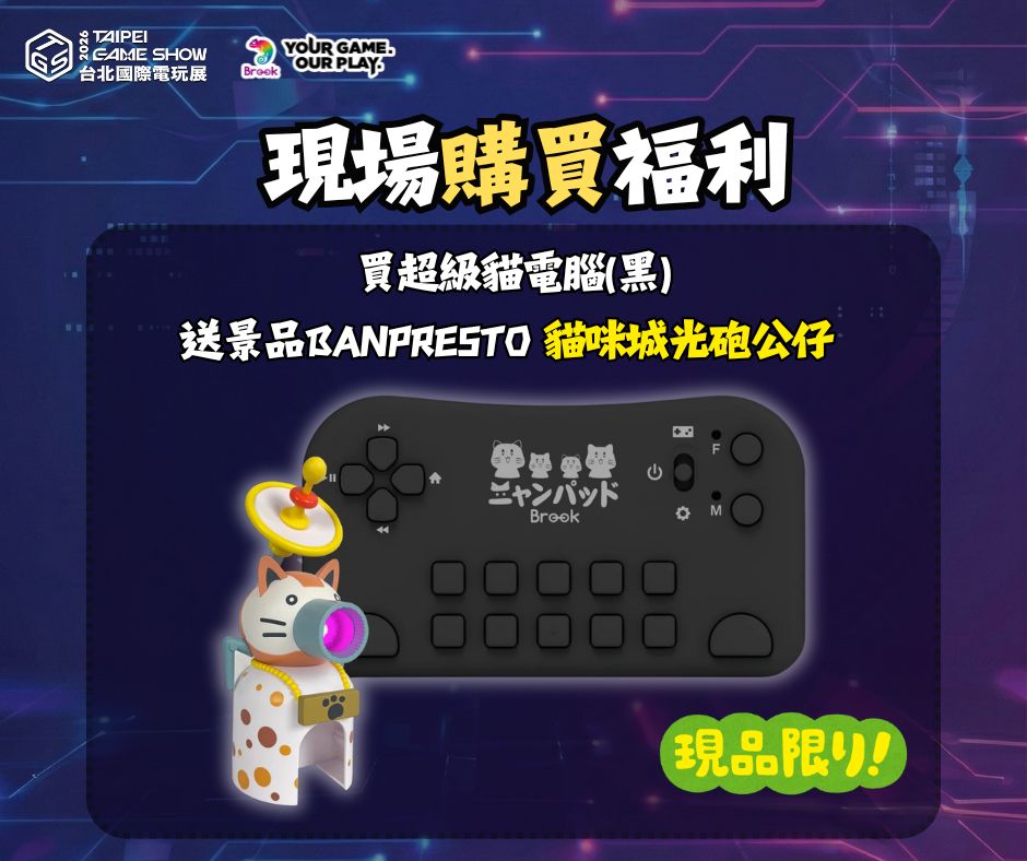 為了回饋玩家,Brook M1034 攤位準備了豐富的「現場限定任務」。玩家只要完成簡單的社群追蹤或體驗任務,即可獲得高級 Type-C 線材、品牌環保袋或行動電源盒等實用周邊。此外,憑券還可兌換《現在不要NOW》聯名鑰匙圈。Brook Gaming 誠摯邀請所有玩家親臨台北南港展覽館,一同見證跨平台遊戲體驗的全新進化。