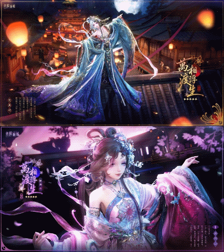 兩套全新五星套裝各自展現了不同的中式美學,「九色亦塵心」以「靈鹿」之意象,呈現輕盈空靈的仙宴之姿;「萬相渡浮生」則繁複細緻的繡紋與飄帶流光,勾勒燈市夜色中百態浮生的妖魅風華。
