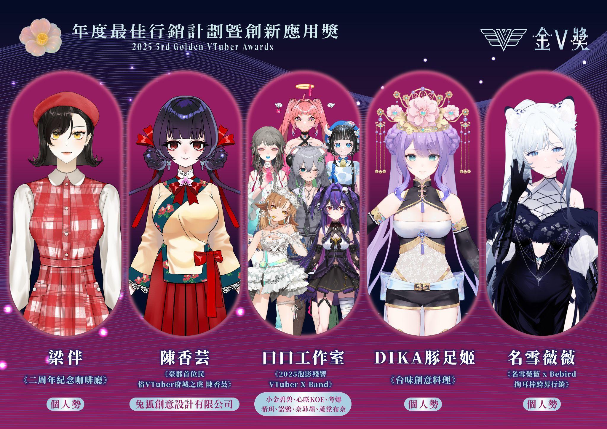 本屆最大的亮點是金V獎首次走向國際展現影響力,其中有香港與馬來西亞VTuber入圍獎項,來自香港的魔女ォケほ同時入圍「年度最佳原創曲獎」與「年度最佳綜合類節目企劃獎」,而馬來西亞的三森ォさ也在最競爭的「年度最佳演唱實力獎」中與其他台灣VTuber一較高下;而「年度最佳綜合類節目企劃獎」也展現數位創作者們的無限創意,入圍作品包含3D音樂劇、互動式劇情與解謎歌回、自製問答地下城遊戲、老年情境式綜藝,讓VTuber發揮虛擬角色優勢,打造和觀眾全新的互動體驗。