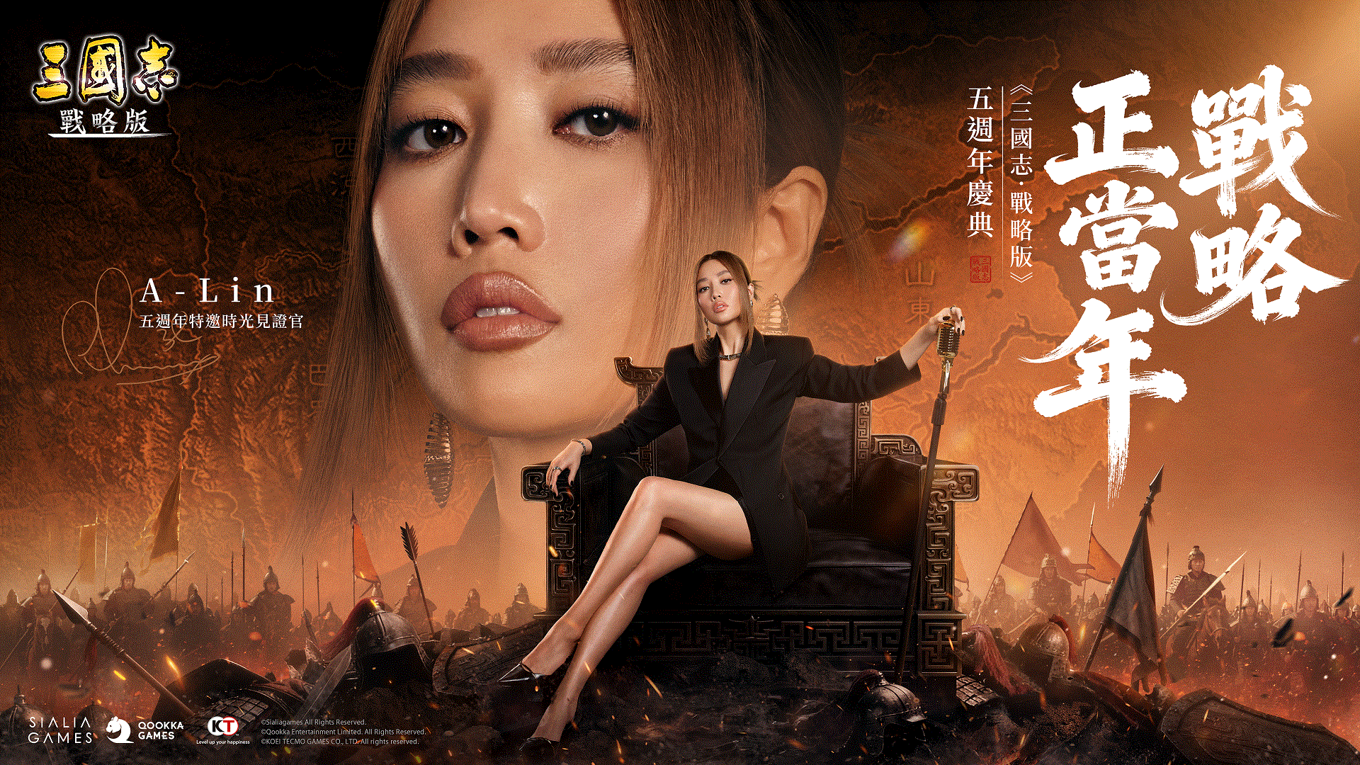 《三國志‧戰略版》五週年盛典之際,官方特別邀請華語實力派唱將A-Lin擔任「五週年特邀時光見證人」,並獻唱主題曲《當鋒》,旋律的慷慨激昂一如玩家在遊戲中征戰時的熱血澎湃。