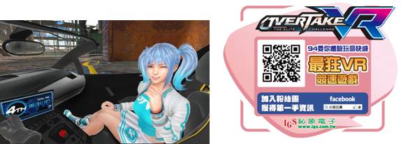 除了刺激的賽車遊戲外,《火線狂飆 VR》準備了可愛的虛擬助手「娜娜」,全程陪同玩家參與賽事,娜娜不只會給玩家操作指引,還會在賽車過程中做出各種反應為玩家加油打氣,使賽車遊戲多了情感傳遞的樂趣。更多精彩內容就在GTI展覽現場,歡迎玩家前來現場體驗《火線狂飆 VR》的魅力!