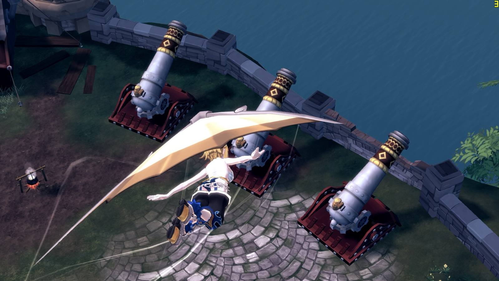 飛翔天空!傲遊千尺!絕不是夢想!玩家可以通過特殊任務利用滑翔功能收集珍貴的金幣,在主城幾乎不用走路。除了此外,更可以配合此創新的操控方法,完成不同的任務,能夠得到更多的海賊懸賞!