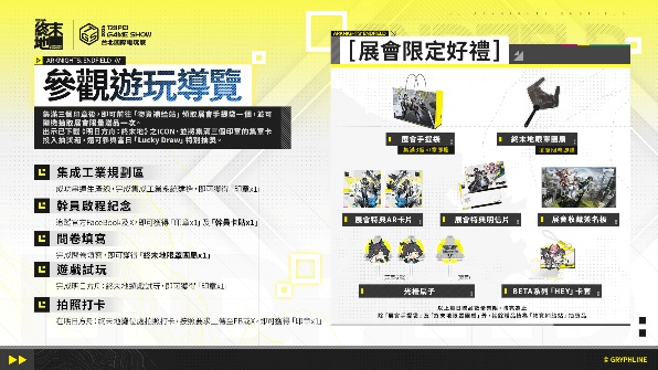 玩家於現場完成指定活動任務,即可蒐集印章並兌換展會限定周邊,包含《明日方舟:終末地》手提袋、AR