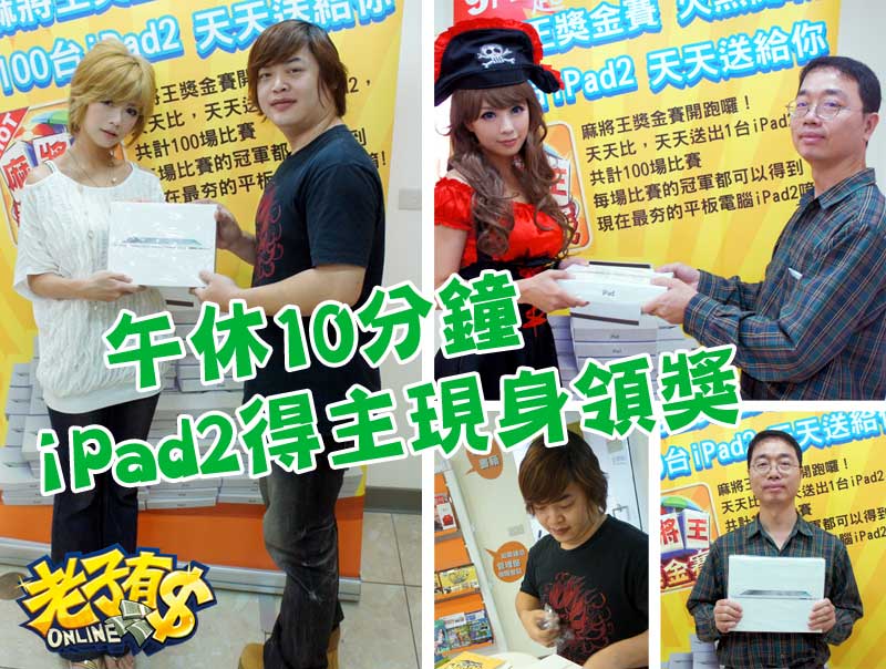 只要在午休時間花十分鐘,你就有機會得到一台iPad2喔!由《老子有錢online》舉辦的「午休大老二」比賽,最高分的冠軍可以免費抱走一台iPad2,得獎者陸陸續續現身領獎,只花短短的時間就得到一台iPad2,有沒有很羨慕阿!