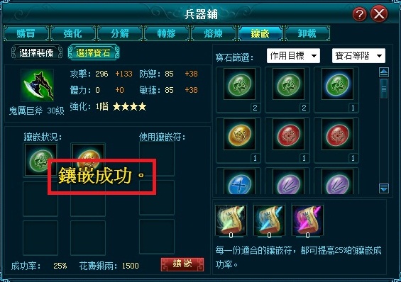 工欲善其事,必先利其器,《戰國龍魂》當然不能免除這項設計。在武防強化上,特別設計了不爆裝的【強化系統】,個人衝裝可安心,並搭配個人化的鑲嵌設計 - 【寶石系統】,透過各種不同的寶石,搭配自己得心應手的部隊安排,打造出專屬於個人的獨特裝備。