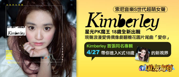 因為演唱偶像劇《翻糖花園》片尾曲「愛你」迅速累積人氣的唱片新人「Kimberley」,帶有溫度的甜美嗓音令人印象深刻,今年剛滿18歲的她演唱經歷豐富,從8歲開始角逐歌唱比賽,13歲時在澳洲被選中後,Kimberley常常赴海外參與大規模選秀活動,更曾遠赴紐約接受歌唱、跳舞、演出等訓練課程。