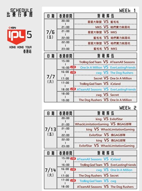 IPL5港澳戰區,線上賽程和現場直播時間表