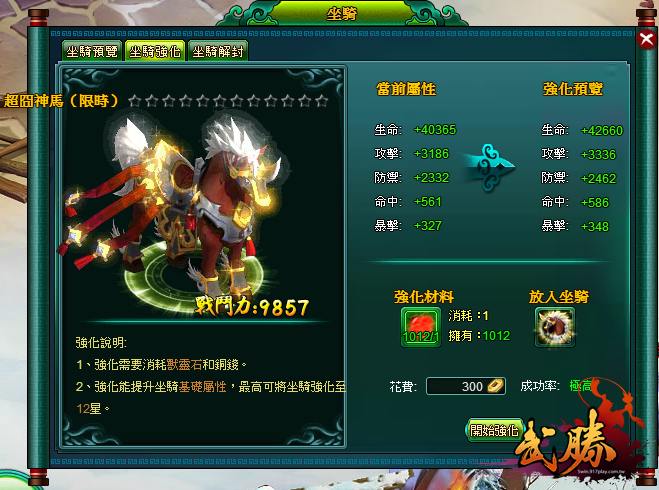 擁有神兵後,當您選擇使用此兵器戰鬥時,可乘坐在坐騎上,和你的坐騎一起戰鬥,馳騁沙場你最殺!官方此次改版,推出「神馬超囧禮包