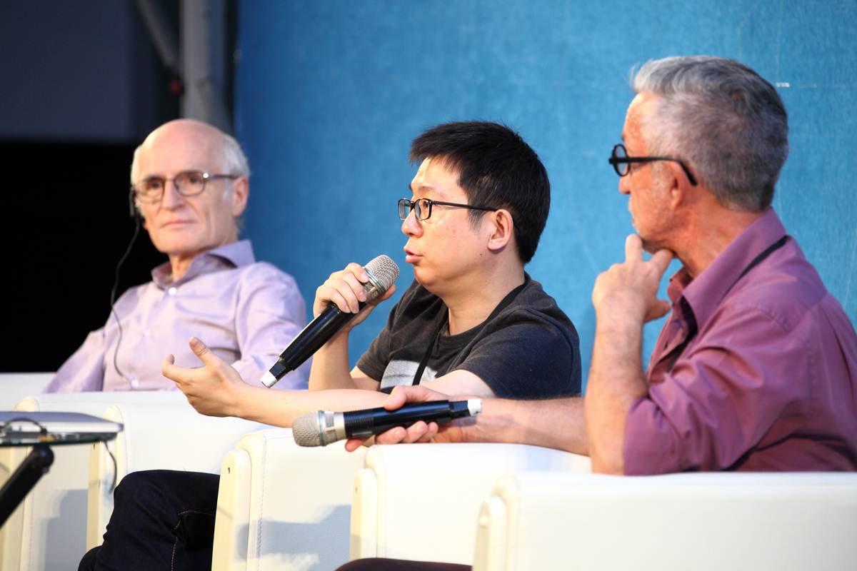 土豆總裁楊偉東在CCDF大會上,與前任加拿大國家電影局局長Tom Perlmutter,以及曾任法國ARTE電影總監的Michel Reilhac共同主講「勇闖數位新世界