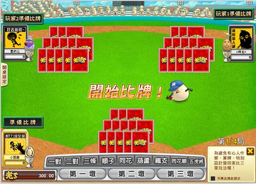 《老子有錢》「13支」是由三個玩家進行的撲克牌遊戲。每個玩家在遊戲開始會拿到13張牌,玩家需將手牌依照「第一墩3張」、「第二墩5張」、「第三墩5張」排出3組牌型,且牌型需符合「第一墩」≦「第二墩」≦「第三墩」來進行比牌,比牌後依照各自輸贏的墩數來決定勝負。 「13支」畫面採用活潑的棒球運動風,兩種超便利的選牌方式任你選,另有小丑牌加持,好牌然給你紅不讓!爛牌也能殺出一條血路!