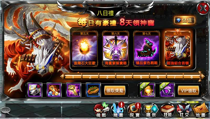 為了讓各位玩家充分享受遊戲樂趣,官方更精心準備了各項獎勵,只要玩家每日登入遊戲內,就可免費獲得多項好禮唷!不管是稀有的紫色戰靴、紫色裝備寶箱、還是超高威力的紫寵紫霞仙子、九尾妖狐,通通都是登入就能領取嚕!