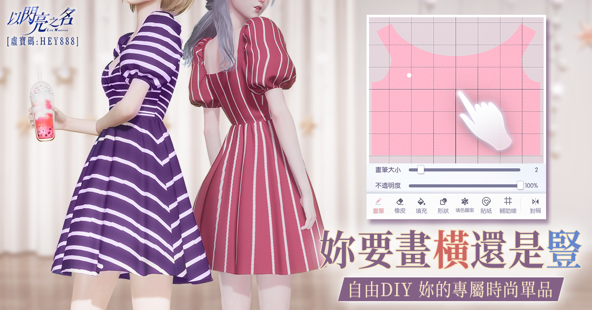 在《以閃亮之名》,每位玩家都可以依託高自由度的捏臉、穿搭與設計系統,來自定義專屬自己的虛擬形象。從髮型、五官到山根嘴角,一切精細選項由你選擇。從華麗洋裝、優雅百褶裙到潮流外套,多種百變風格由你定義。從面料、版型到塗鴉,你還能從布料到成品,DIY一套獨一無二的服裝。