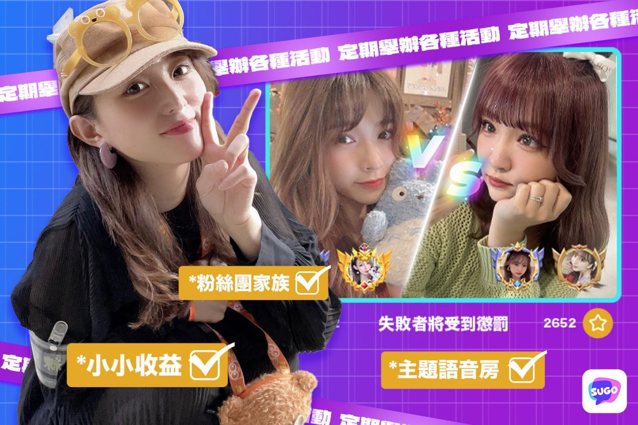 《SUGO》也會定期舉辦各種活動,都能讓更多用戶有目標性地進行參與,也能從中認識更多不同特色的朋友。此外用戶也能在平台上經營自己,能建立主題語音房,還能建立粉絲團家族等,讓更多人認識自己,也能從收獲得一些《SUGO》小小收益。