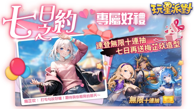 ★ 新手活動七日之約,無限十連抽讓你100%獲得命定之人,再送「梅芷玖」專屬限定服裝。