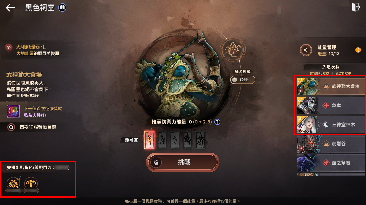 對應新增的傳說故事,黑色祠堂也開放三種全新頭目「三神」、「不可殺」及「烏圖里」,各具備其特殊戰鬥風格,並首次導入在戰鬥中可與副角色切換的新玩法,提升攻略樂趣。新增的黑色祠堂頭目討伐在完成對應的傳說集後即可進行挑戰,且在活動期間成功通關後,可加碼領取「聖潔的女神之淚」等特別獎勵。