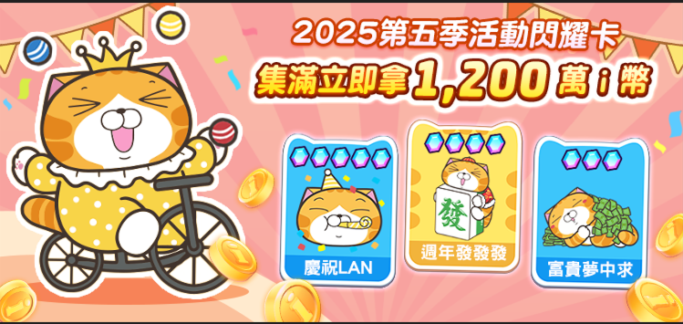 白爛貓集字換黃金:限時開放白爛貓集字活動,只要收集到指定字樣,就有機會兌換好禮——黃金1g卡!