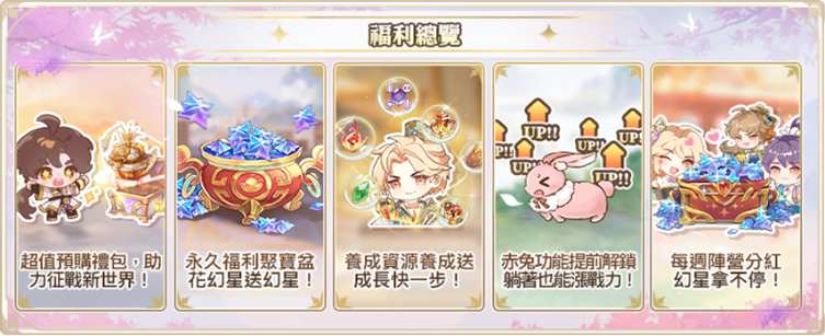 新世界服正式開啟!進入新服的城主們簽到即可享好禮!週一至週六送SSR武將,週日還送SP武將,讓你全圖鑑武將都可以輕鬆拿到!另外還有超值預購禮包、永久福利聚寶盆以及花幻星送幻星,助你徵戰新世界!還不止這些,升級免費領全圖鑑靈寵,養成武將、神兵等玩法,免費送養成資源,陣營分紅拿不停,每週依戰功領取幻星分紅!豐厚獎勵拿到手軟,最強城主就是你!