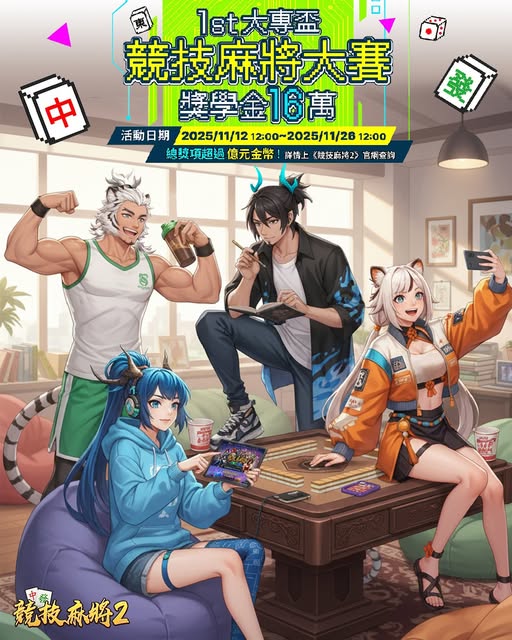 【2025.12.18 mirror 訊】 由《競技麻將2》主辦的 「第一屆大專盃競技麻將大賽」,於 2025 年底正式寫下校園競技新頁,成功將「公平對戰、實力決勝」的競技麻將推進大專校園,不僅吸引全台學生熱烈參與,更以高達新台幣 16 萬元總獎金,引發高度討論。