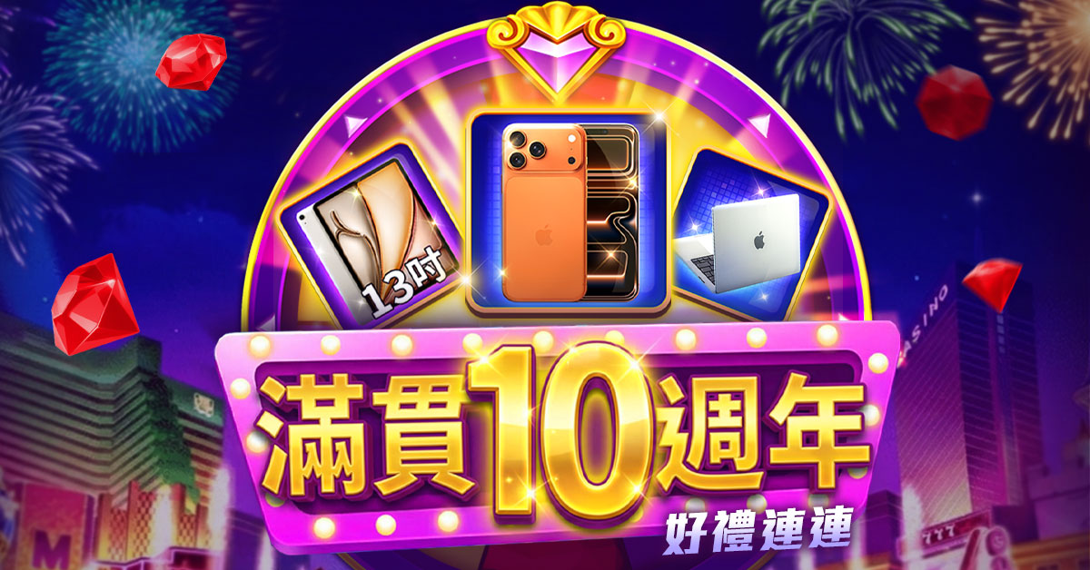 《滿貫大亨》10 週年慶,是一場屬於贏家的盛宴!無論你是老手還是新玩家,現在就是最佳進場時機!別再羨慕別人中獎,這次主角就是你!只要參與活動,這些讓人眼紅的夢幻逸品,都有機會讓你0成本帶回家!這種「玩遊戲還能賺大錢」的機會,錯過這次再等十年!