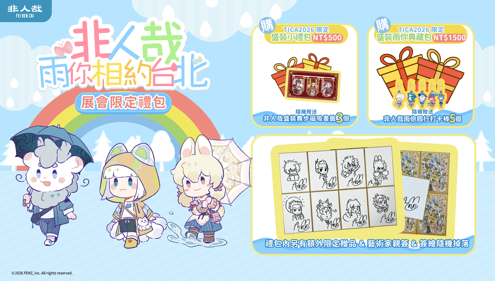 TiCA2026 限定 - 盛裝雨你典藏包:一次蒐羅「盛裝舞步」系列一盒14個圓形徽章,並包含 5 支「雨你同行」系列展會限定打卡棒,以及多款超值週邊和紀念品,同樣每日限量,先到先得。